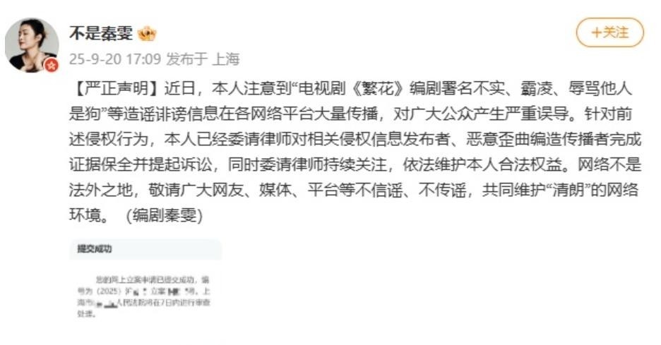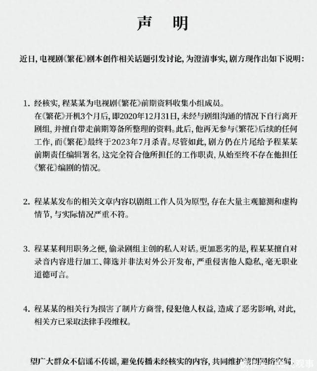 【荆楚网】《繁花》编剧秦雯称“署名不实、霸凌”等传言是造谣诽谤;此前剧组回应没给编剧“古二”署名:署了2千多人名,将公开前期筹备内容