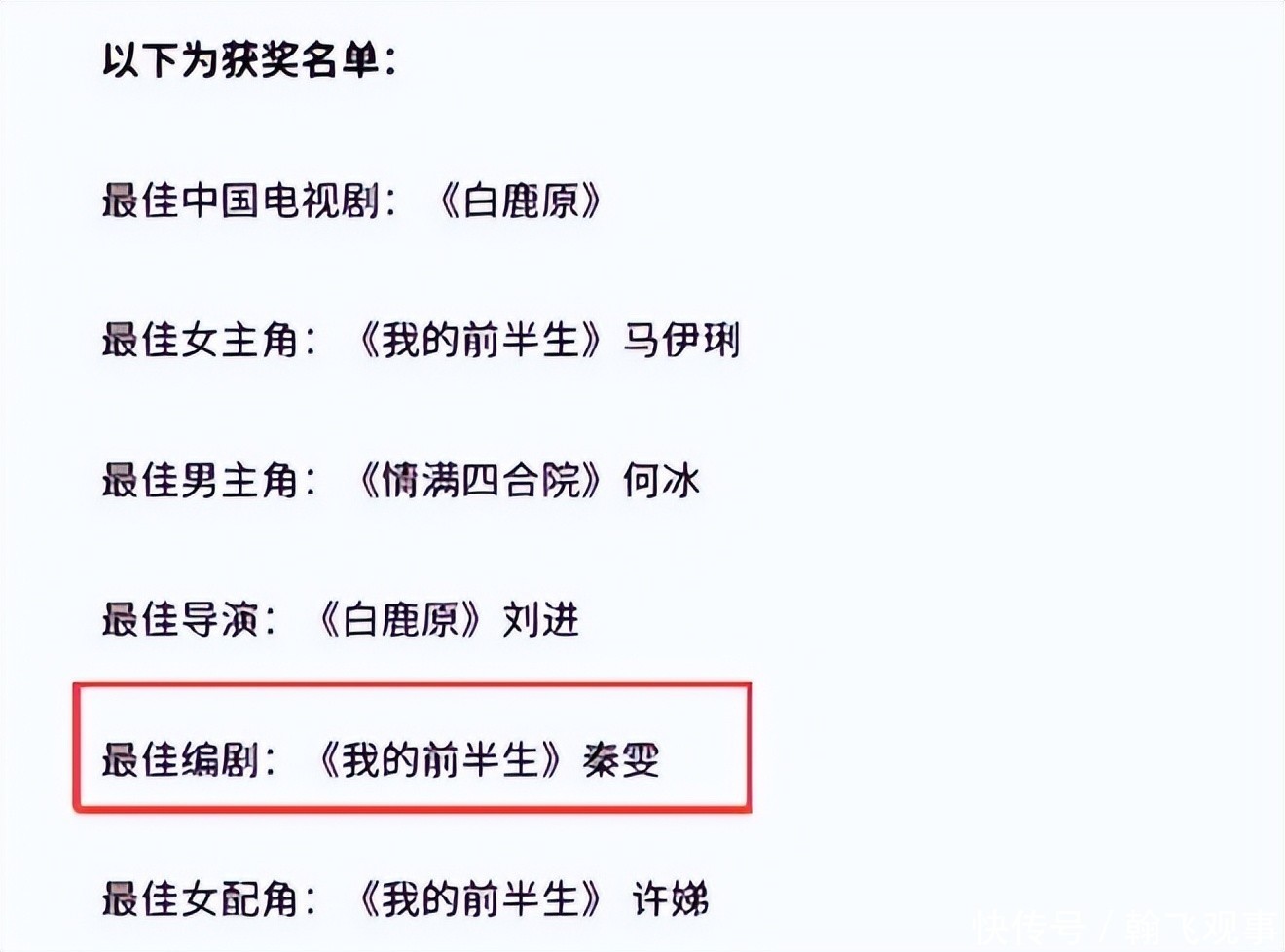 早期时候,秦雯凭借《我的前半生》这部作品斩获白玉兰最佳编剧,自此一炮而红。